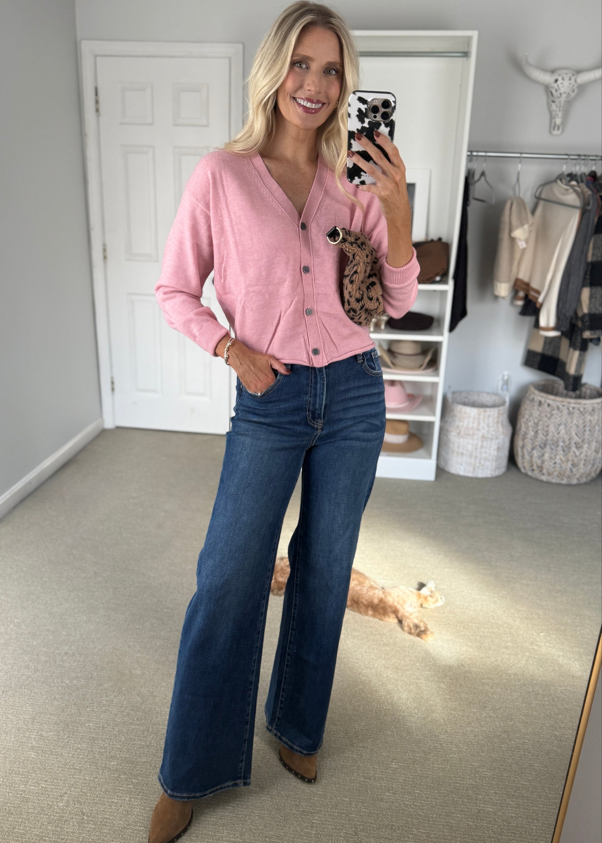 This sweet, lightweight cardigan is in the softest shade of pink and has a traditional look with its' v-neck and more fitted shape. 74% ACRYLIC,...