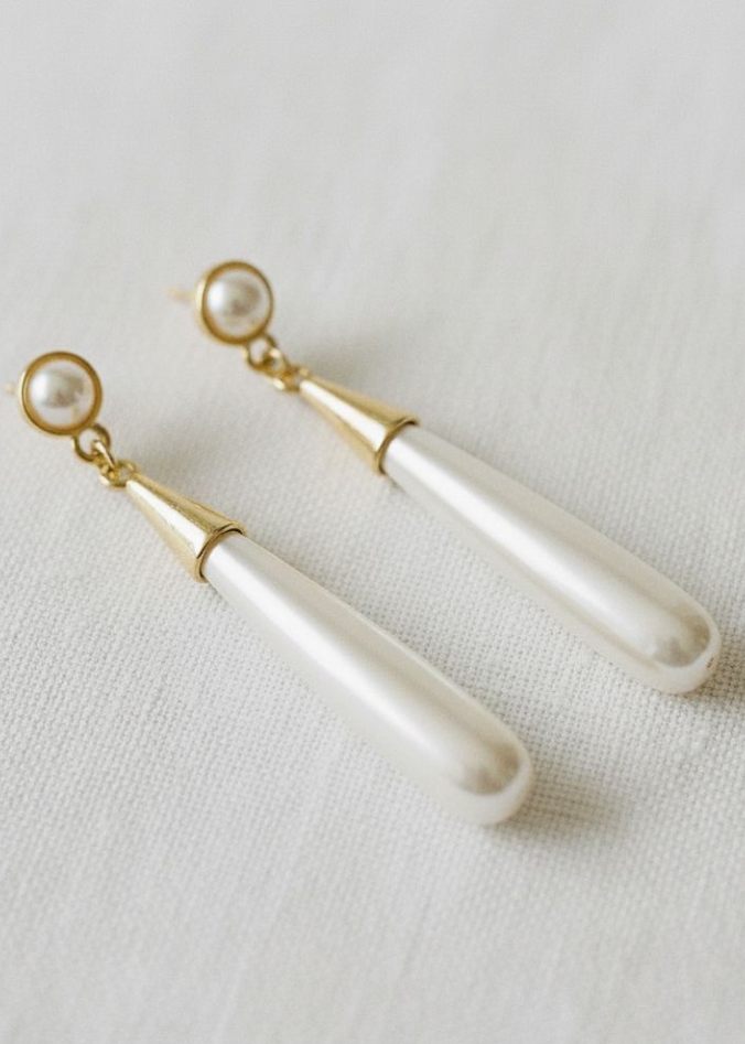 Truly elegant drop earrings in a stunning cream and gold combination. Keep away from moisture and chemicals to maintain quality. 2.5".