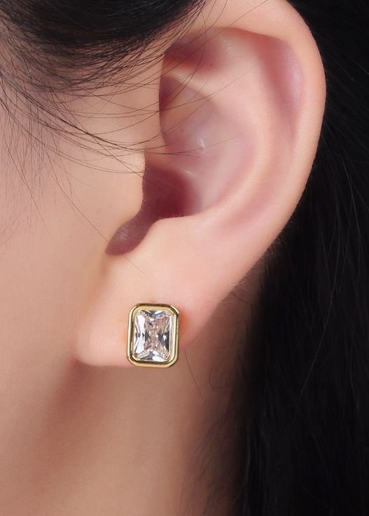 Beautiful cushion-cut, clear CZ crystals set in a 24KG-fill frame.
