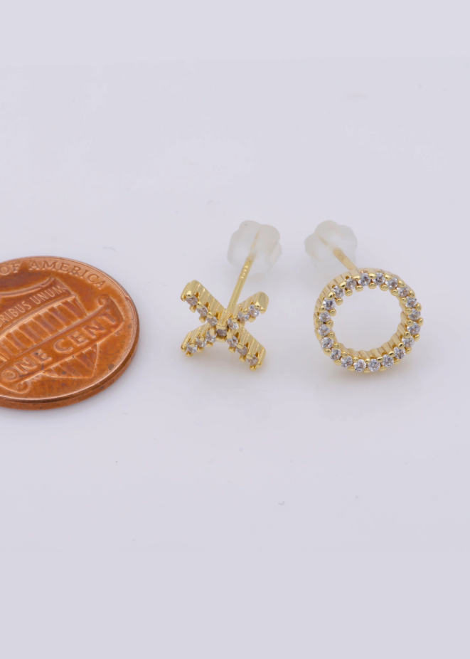 Dainty gold studs encrusted with tiny CZ stones. 24 KG-filled for a long life. Keep free of moisture and perfumes.
