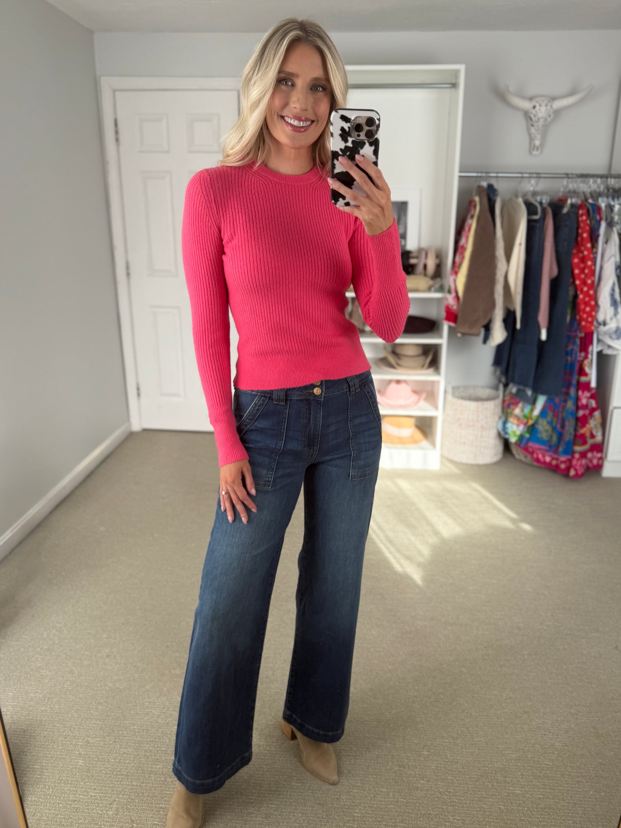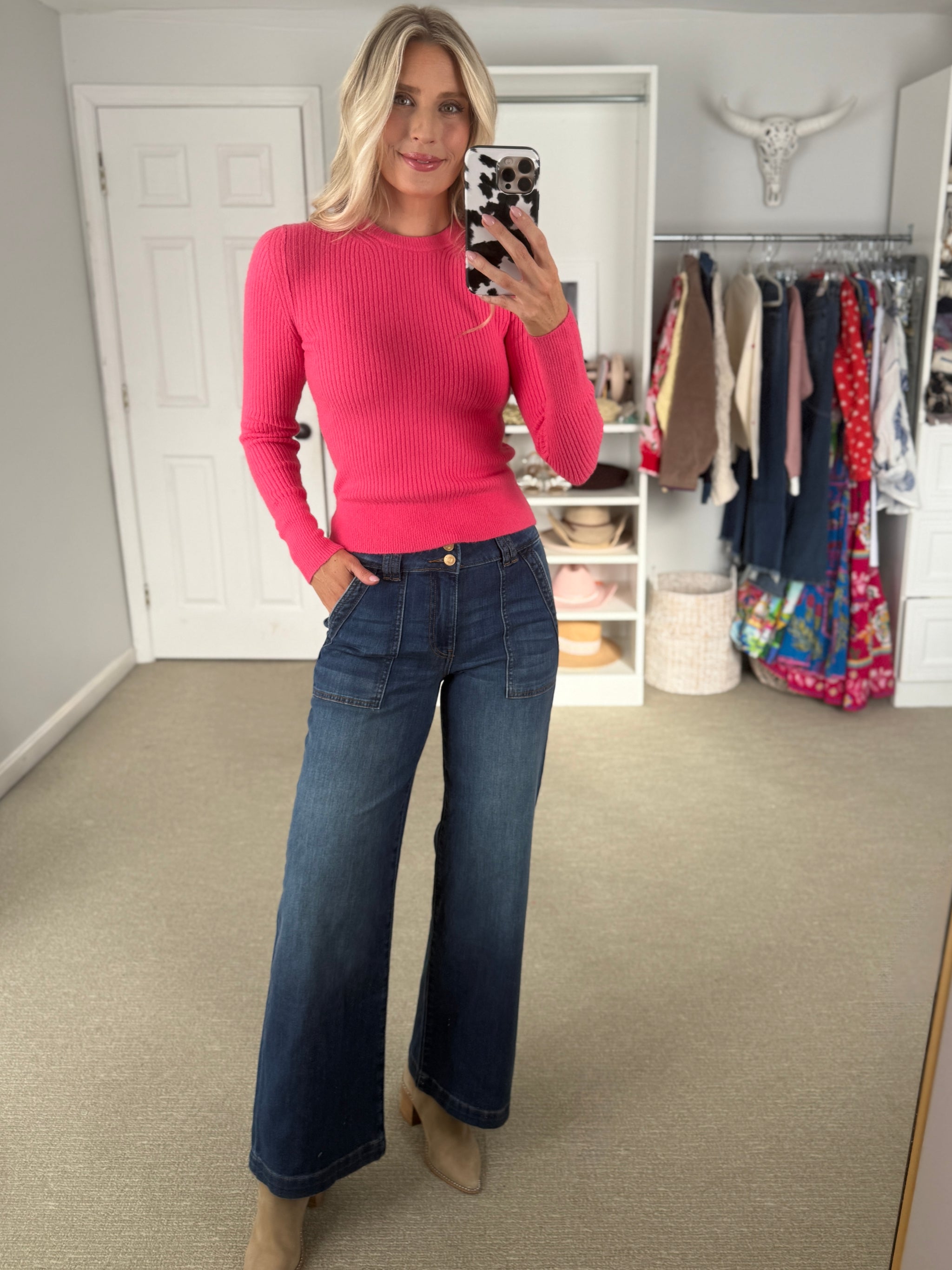 Made to flatter and built for comfort, these high rise wide leg jeans are a closet staple. The rich dark wash adds a refined touch,...