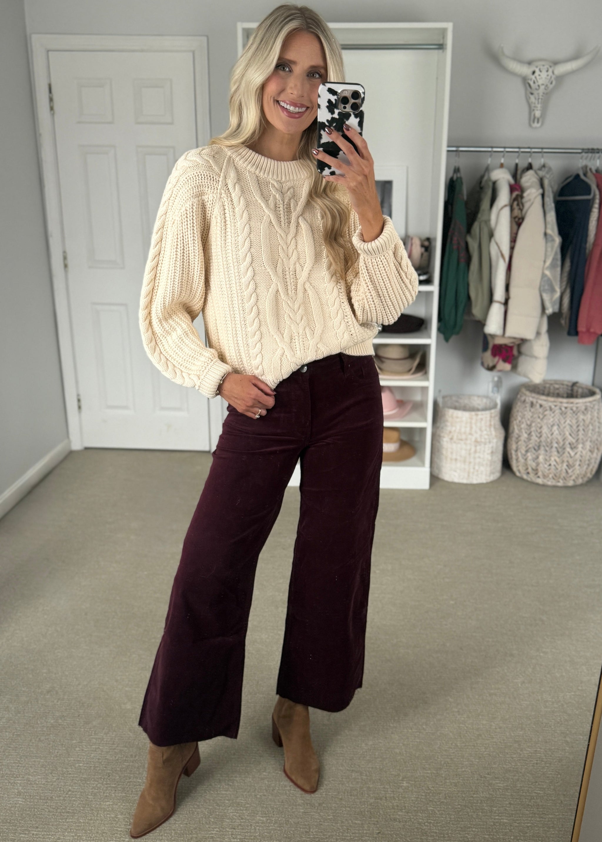 A new take on a forever classic, this staple sweater is featured in a chunky knit fabrication with timeless cable detailing throughout for an added...