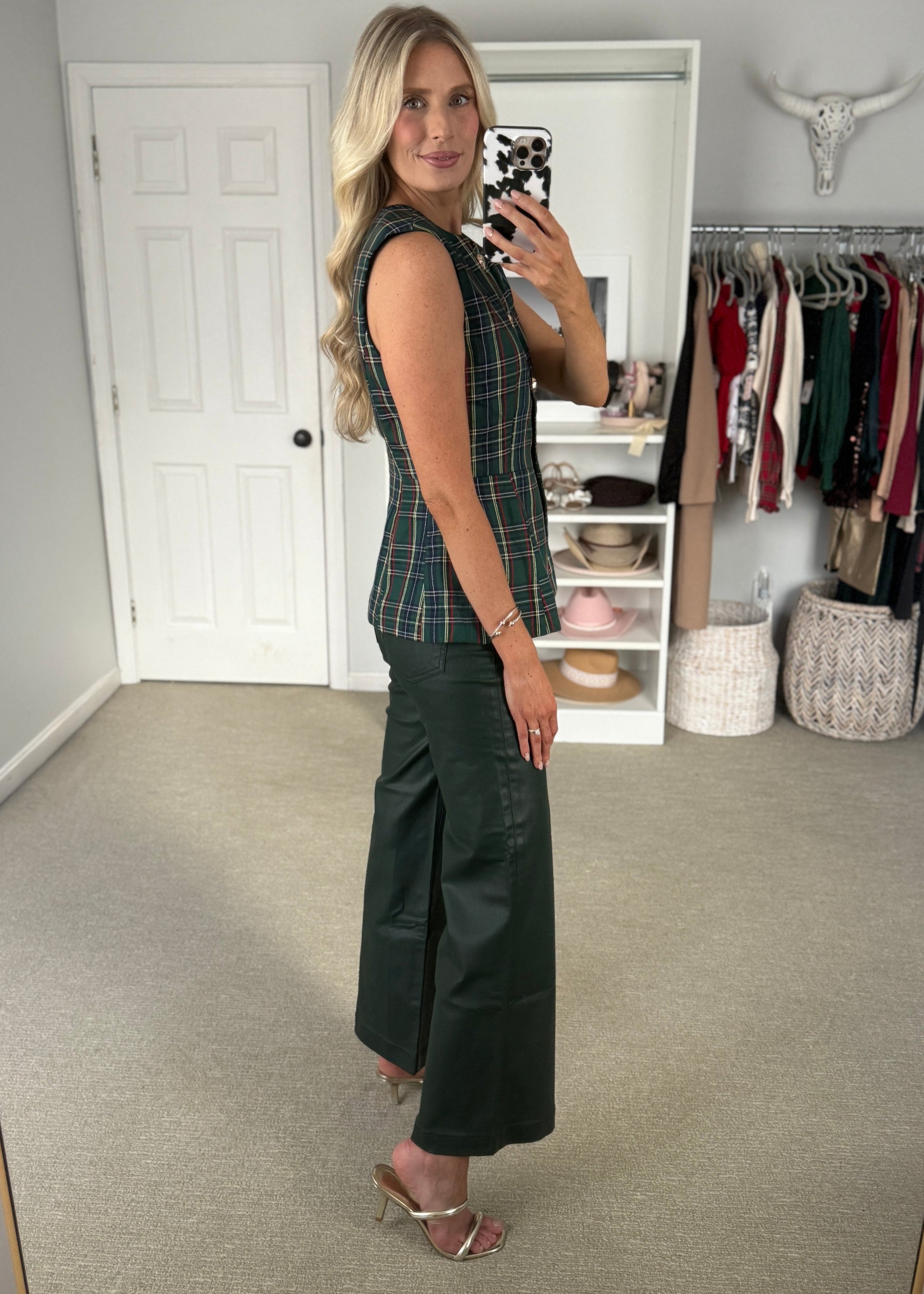 A wow piece for the holidays and all winter long. We just love this traditional Plaid sleeveless vest featuring gold accent buttons and a slightly...