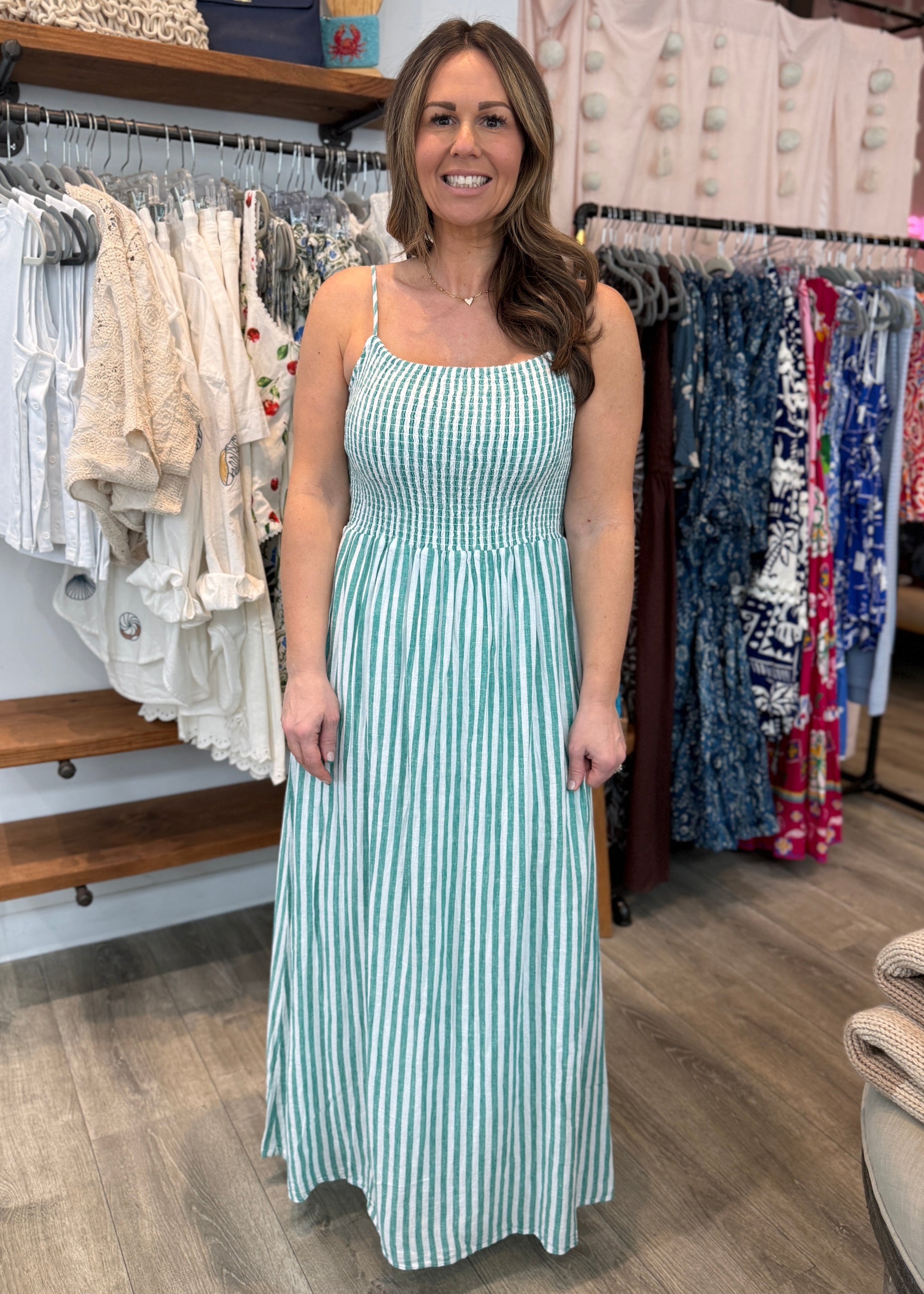 Made from a lightweight textured linen, this maxi dress is the definition of easy dressing. Its smocked bodice and adjustable straps provide a great fit...