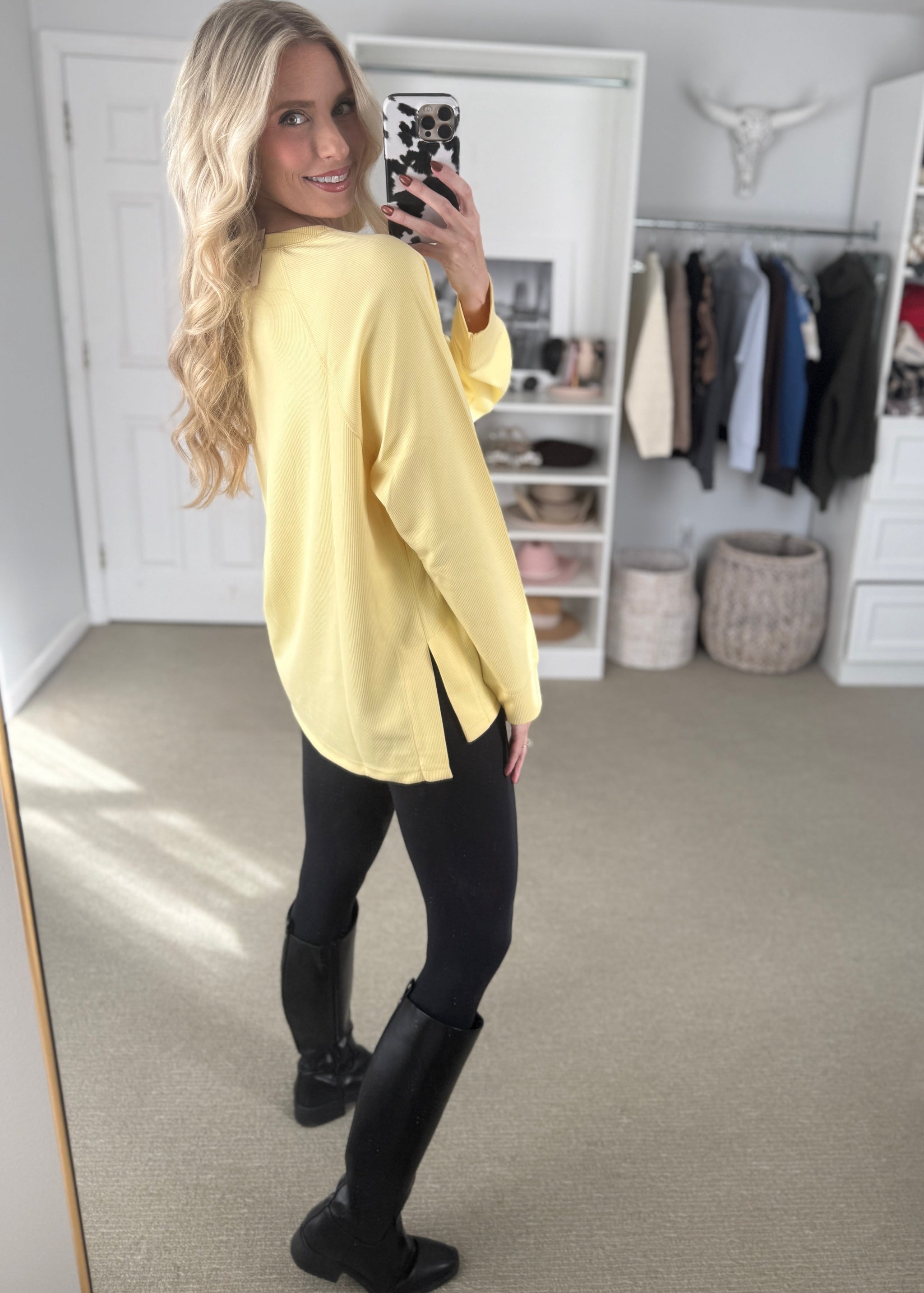 A modern staple with an effortless drape, this long sleeve tee is crafted from buttery-soft, sand-washed rib fabric. Featuring a classic crew neckline and raglan...