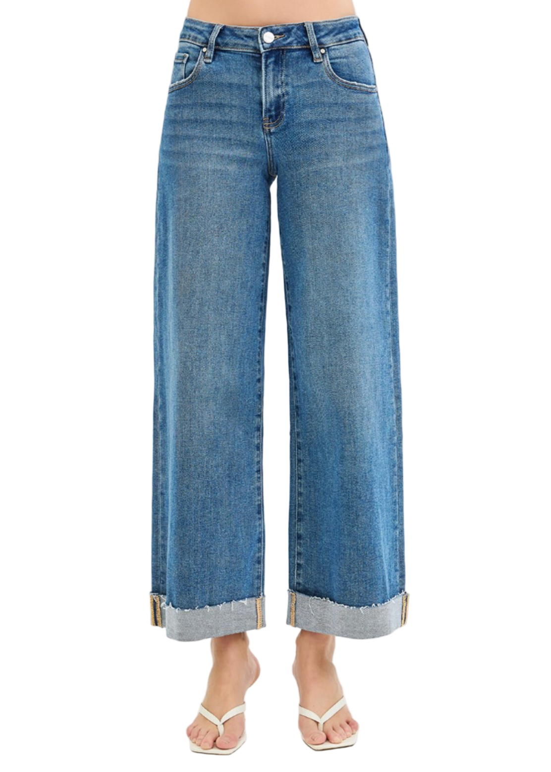 LOW RISE ANKLE WIDE CUFFED JEANS Rise 9" | Inseam 29 1/2"(after cuff) 31 1/2"(before cuff) in size 3/26