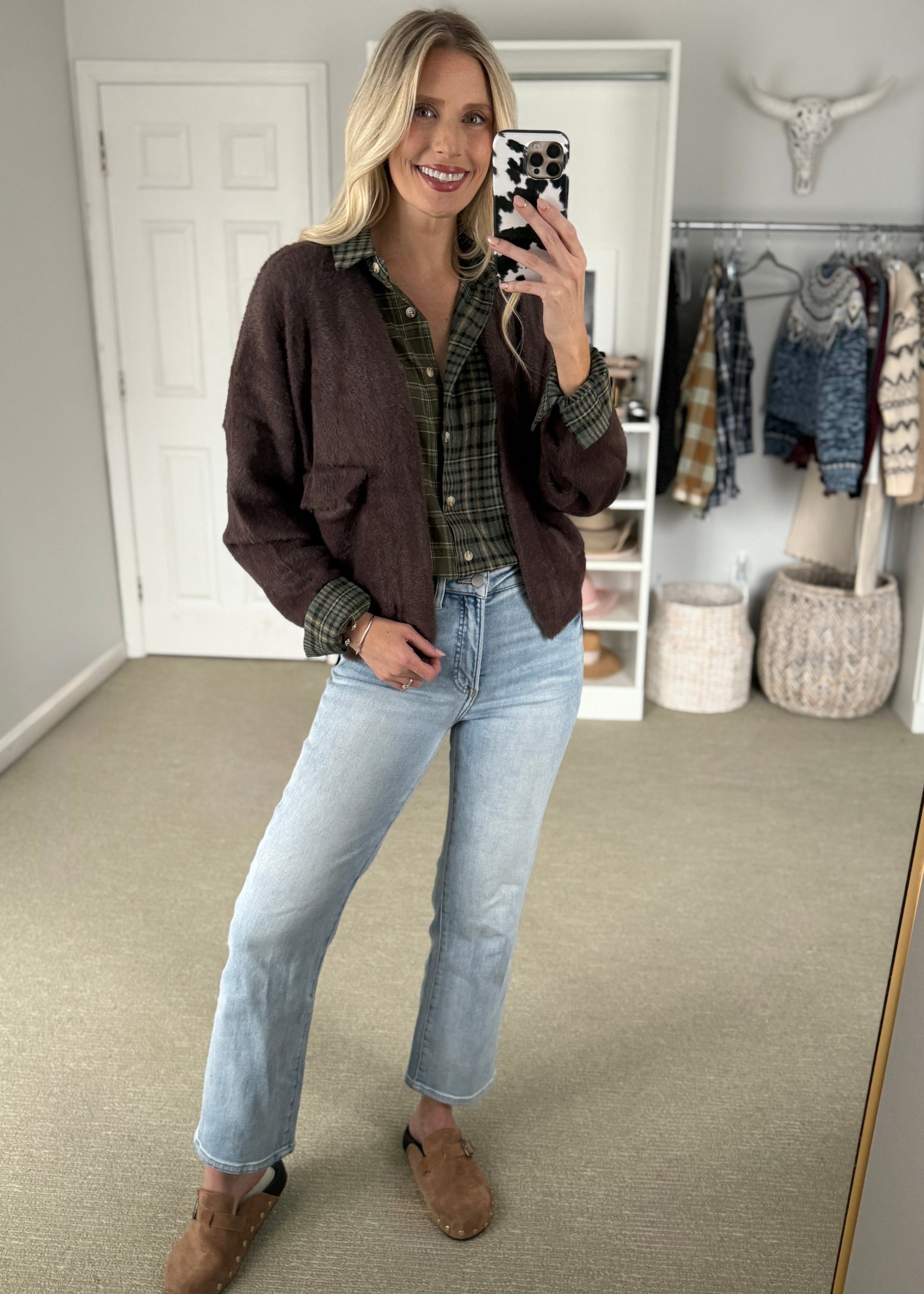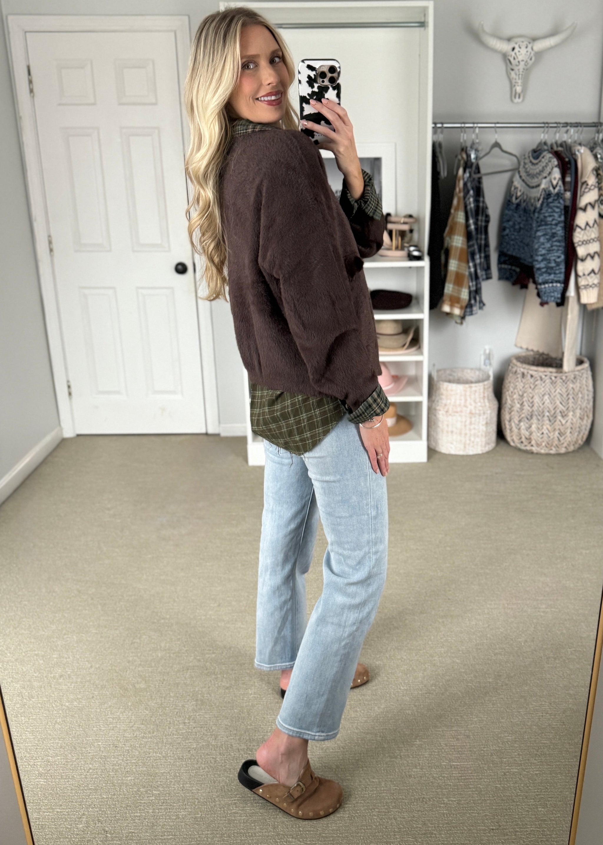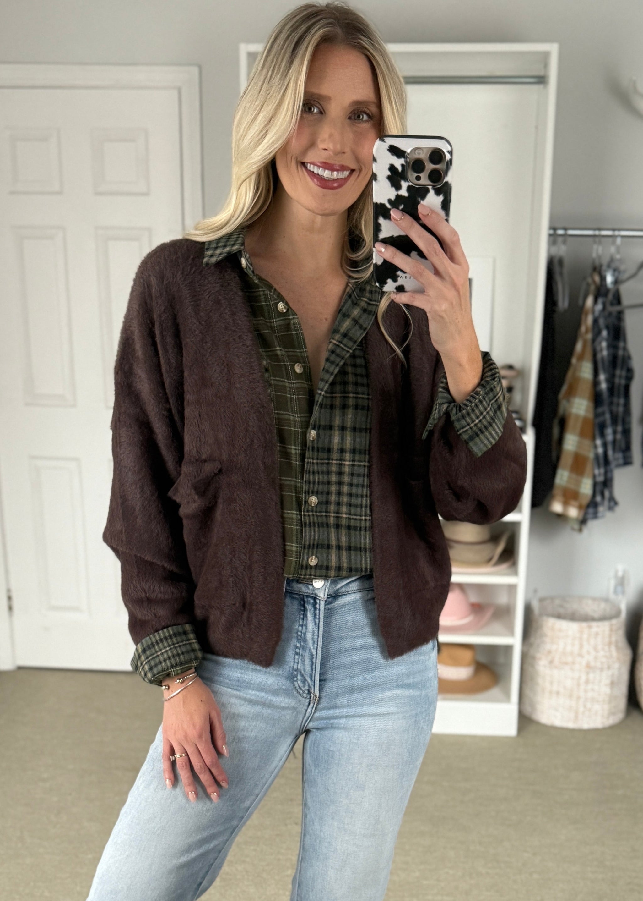 Snuggle up in style with the fabulous animal print Sherpa Crossbody Bag! This accessory offers the perfect blend of cozy texture and roomie design. 14.5...