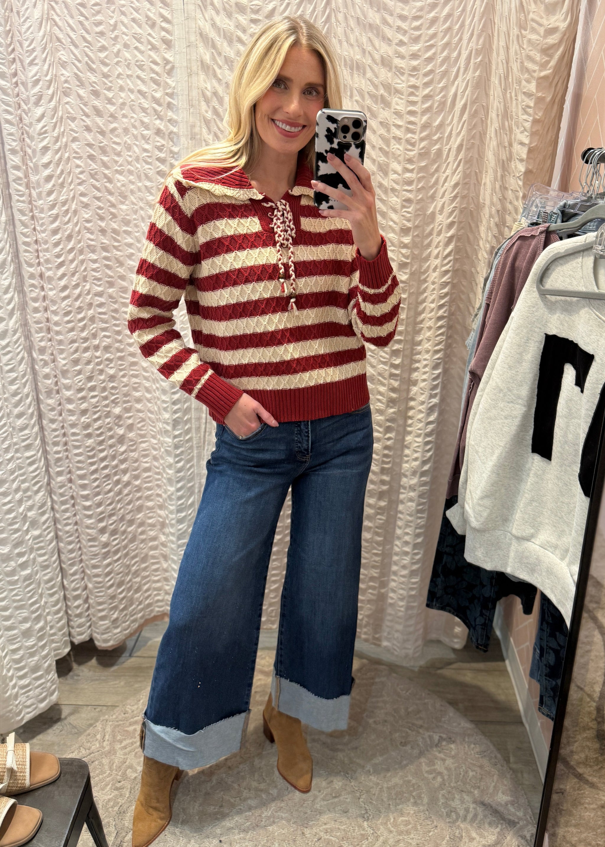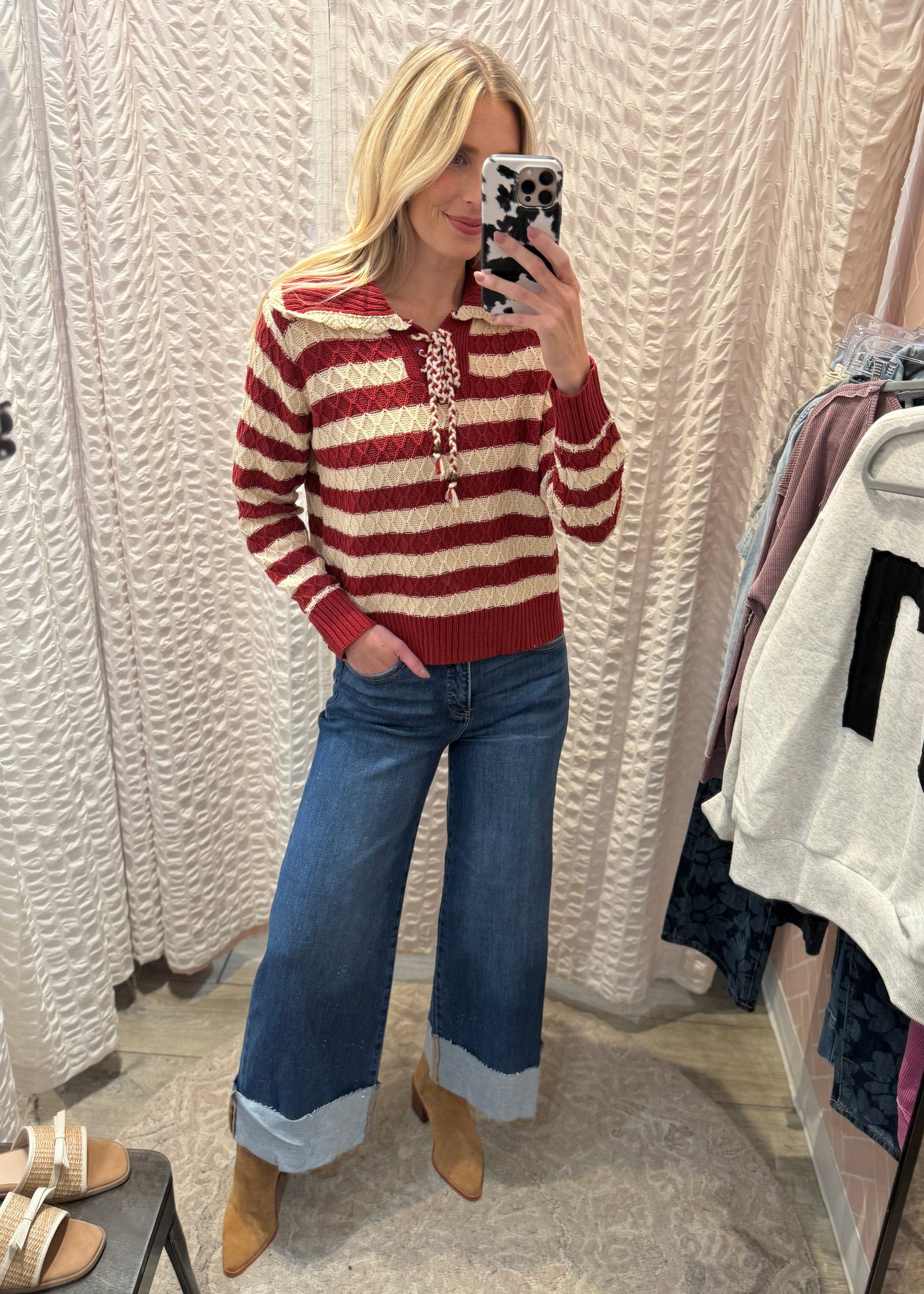 This stylish sweater features bold textured stripes and a unique cable knit pattern for a modern twist on a cozy classic. We love the braided...