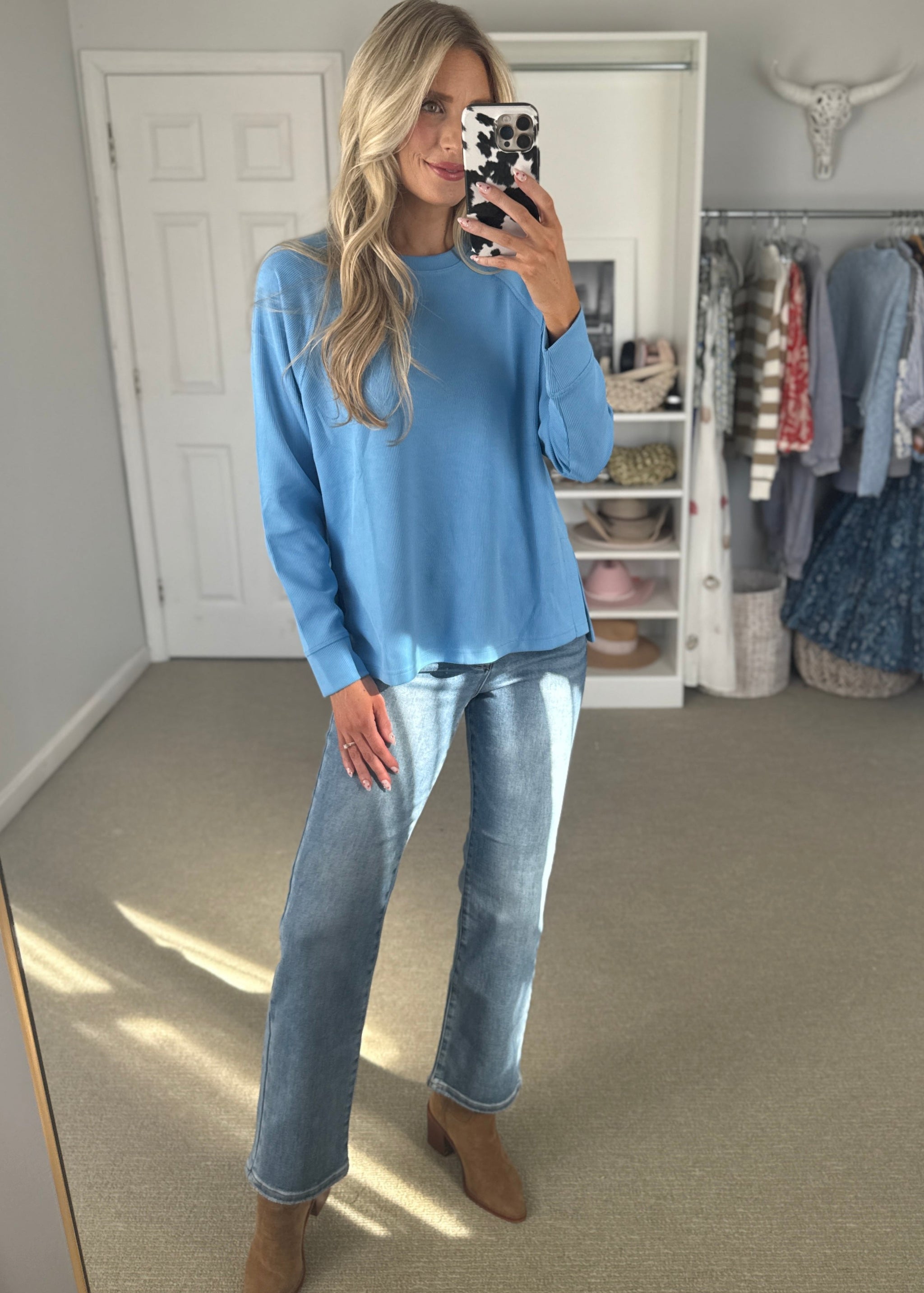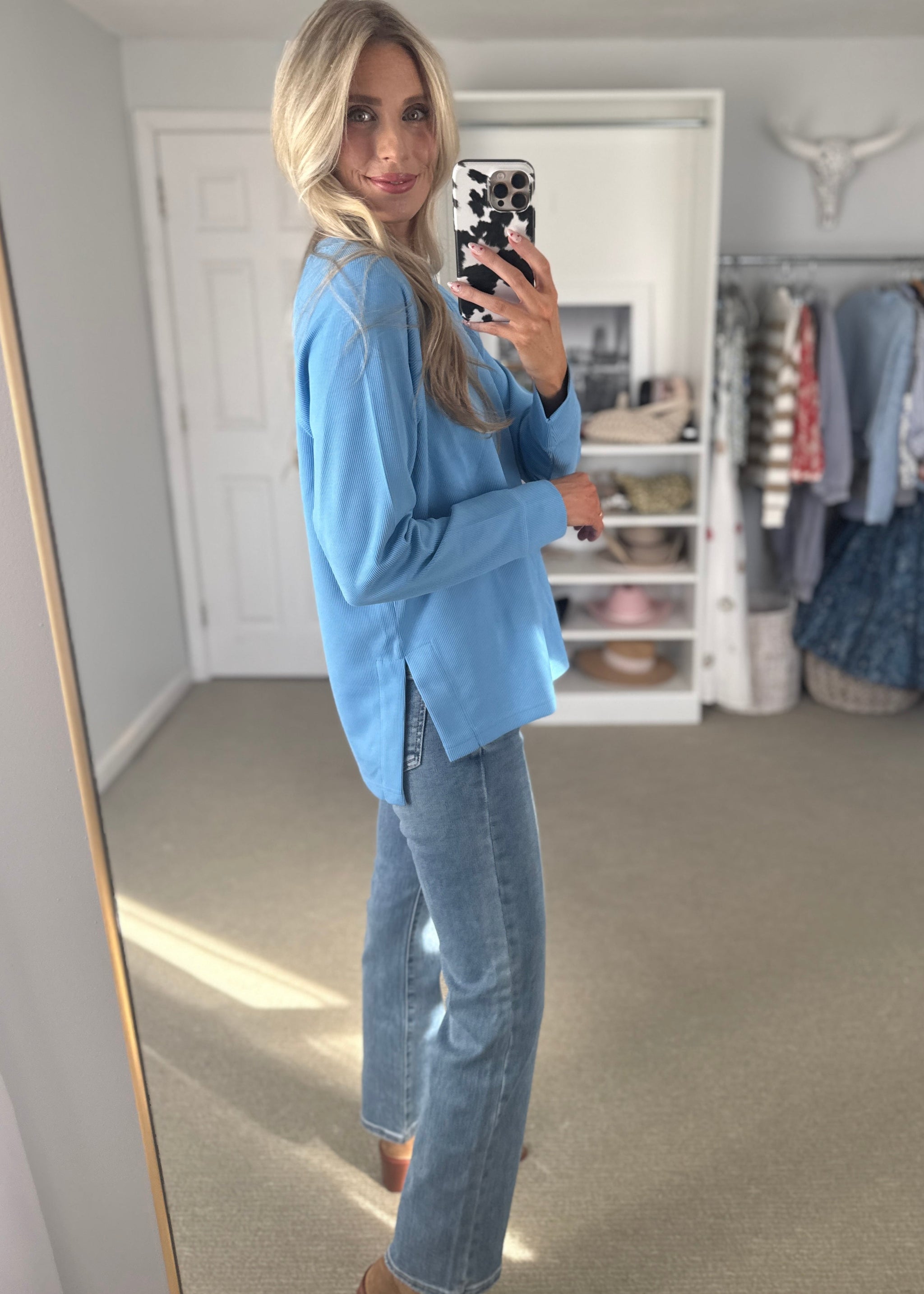 A modern staple with an effortless drape, this long sleeve jersey is crafted from buttery-soft, ribbed fabric. Featuring a classic crew neckline and raglan sleeves,...