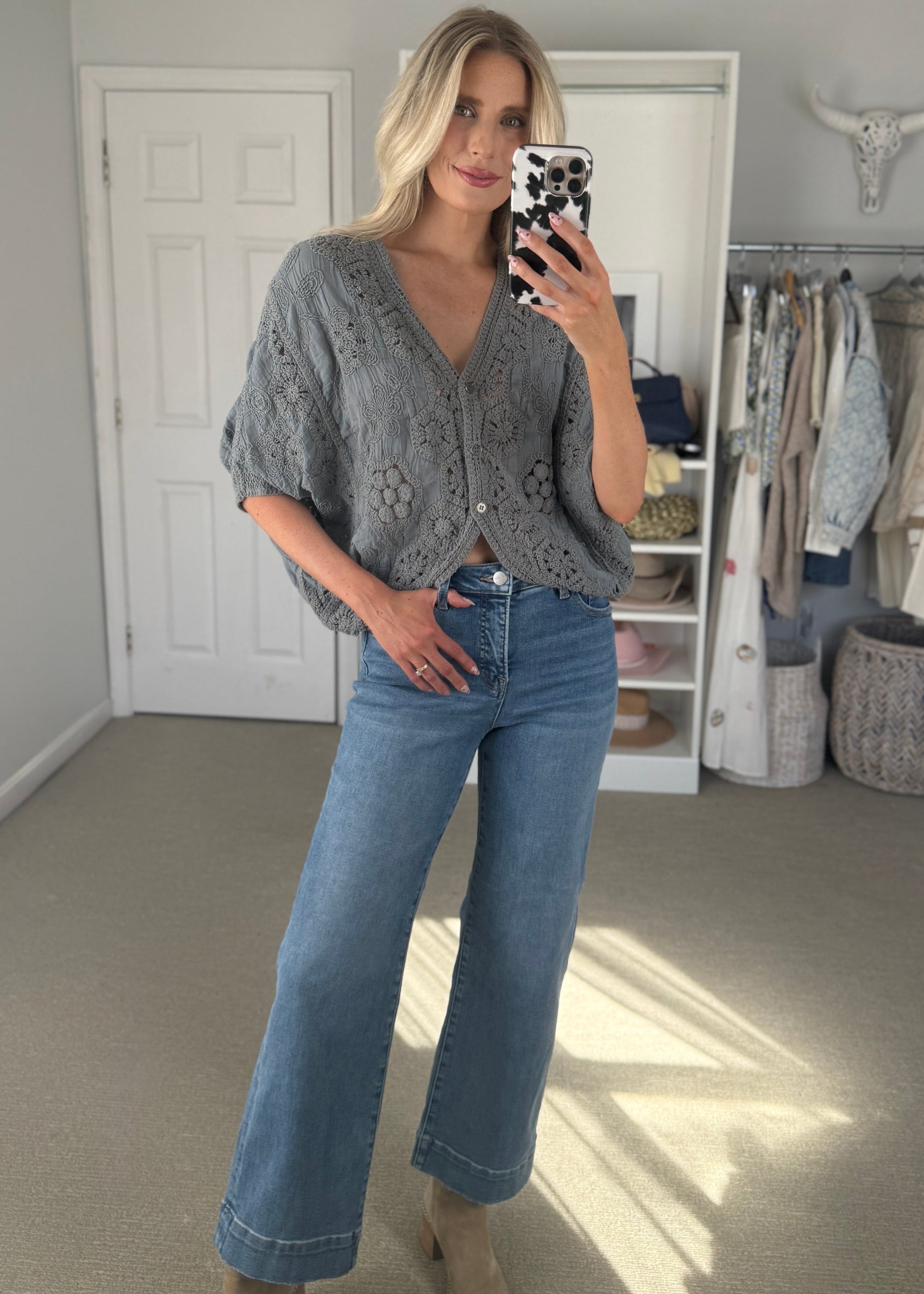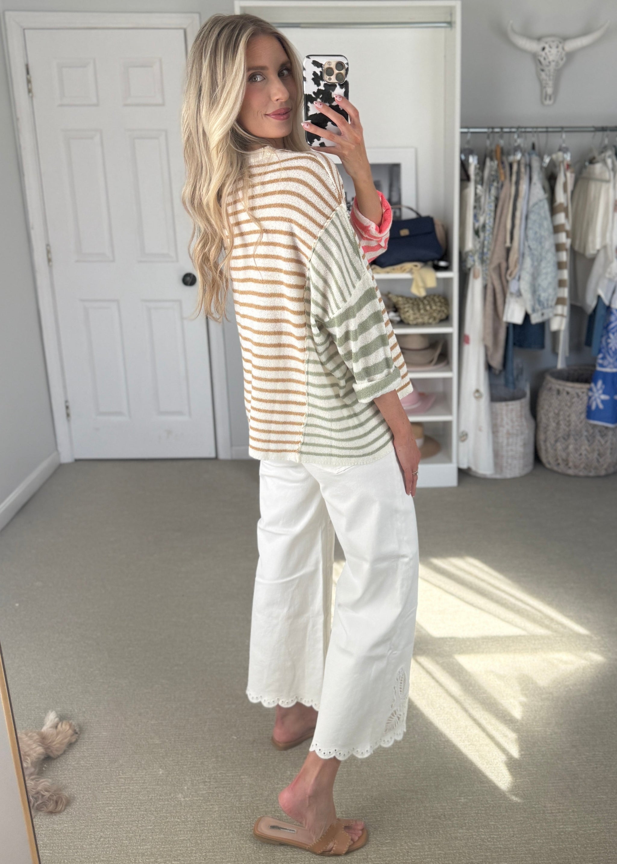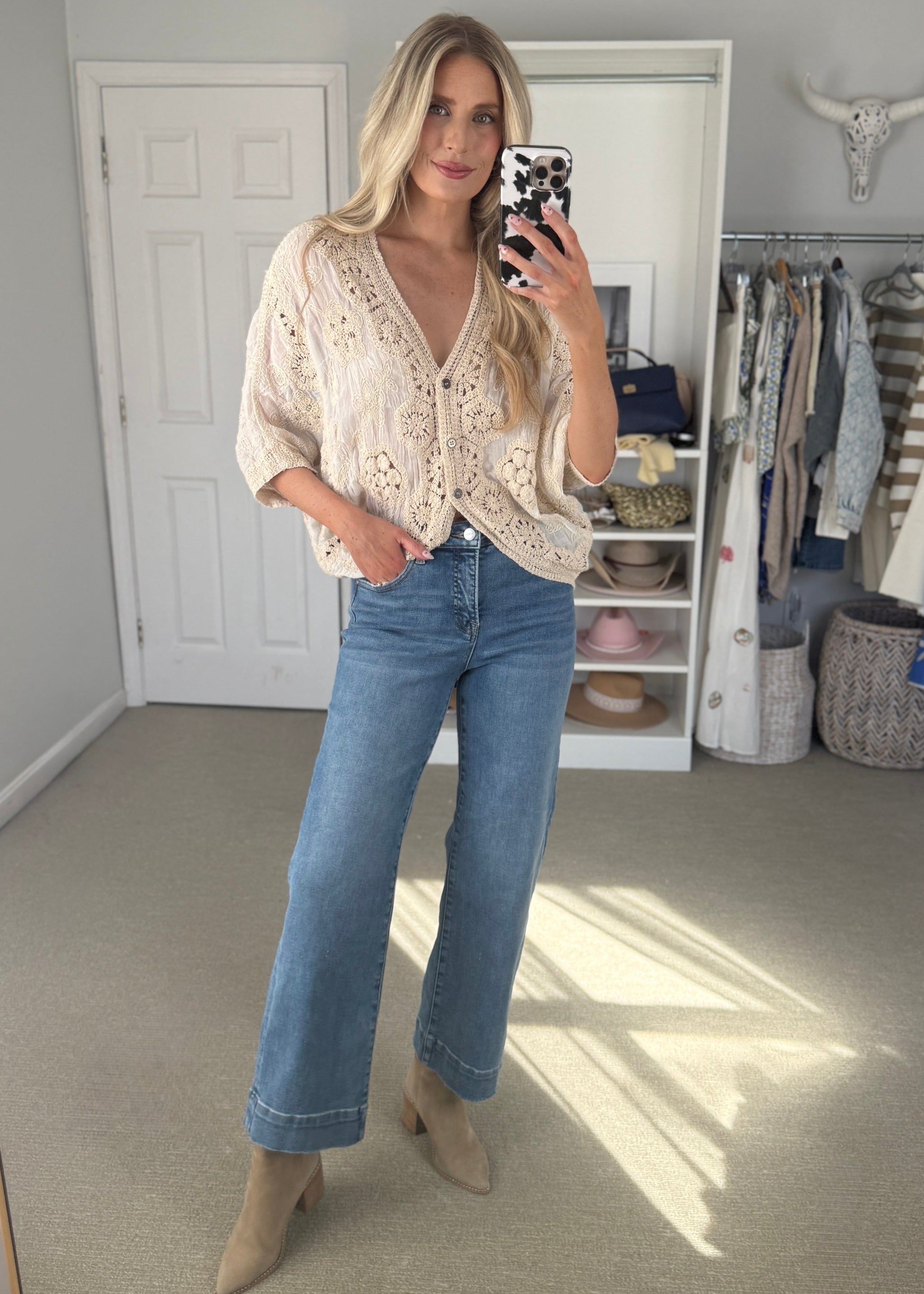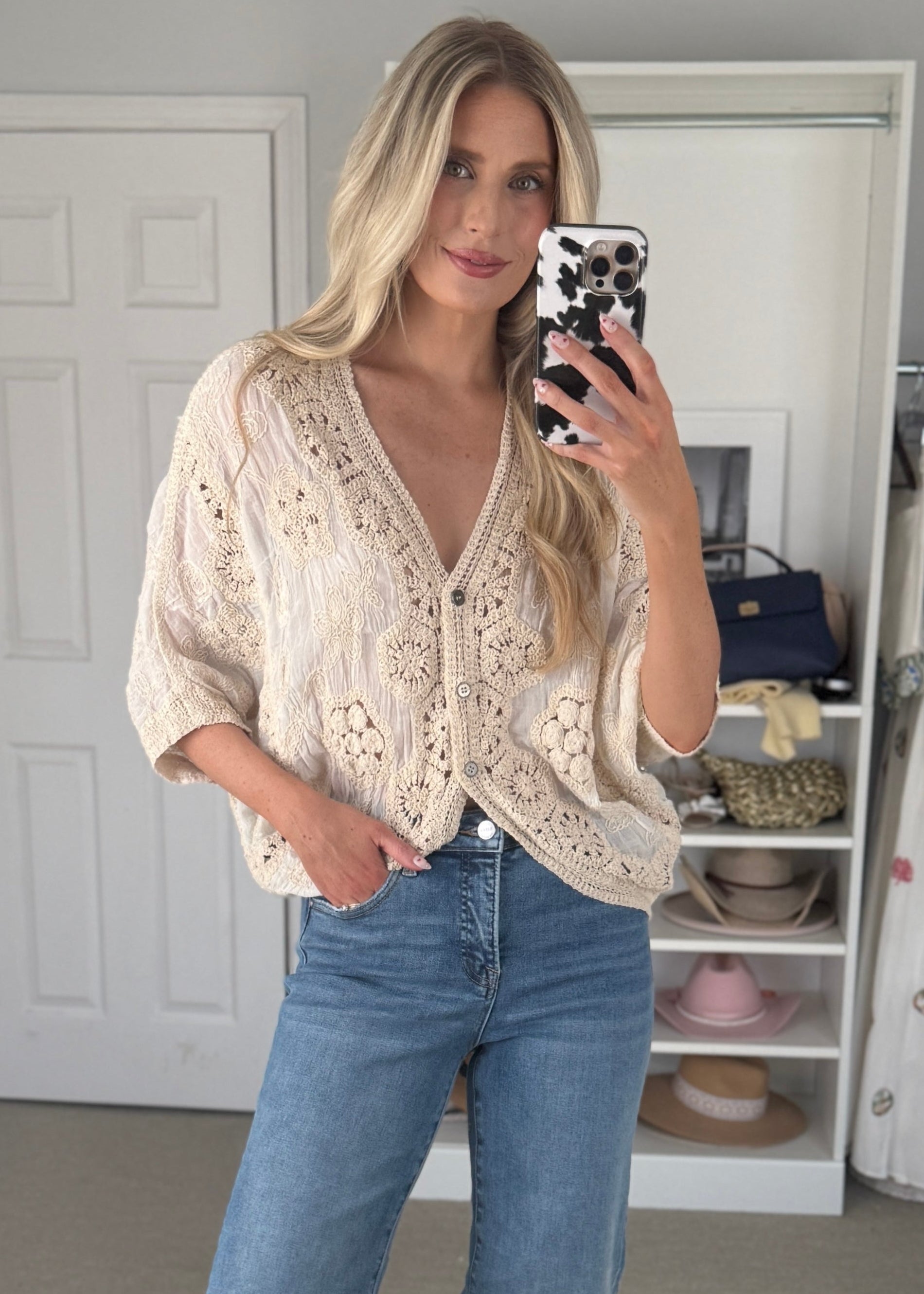 The perfect match for the Sunkissed Loungers. This Crochet Pullover is your go-to lightweight sweater for breezy spring and summer days. Made from a soft...