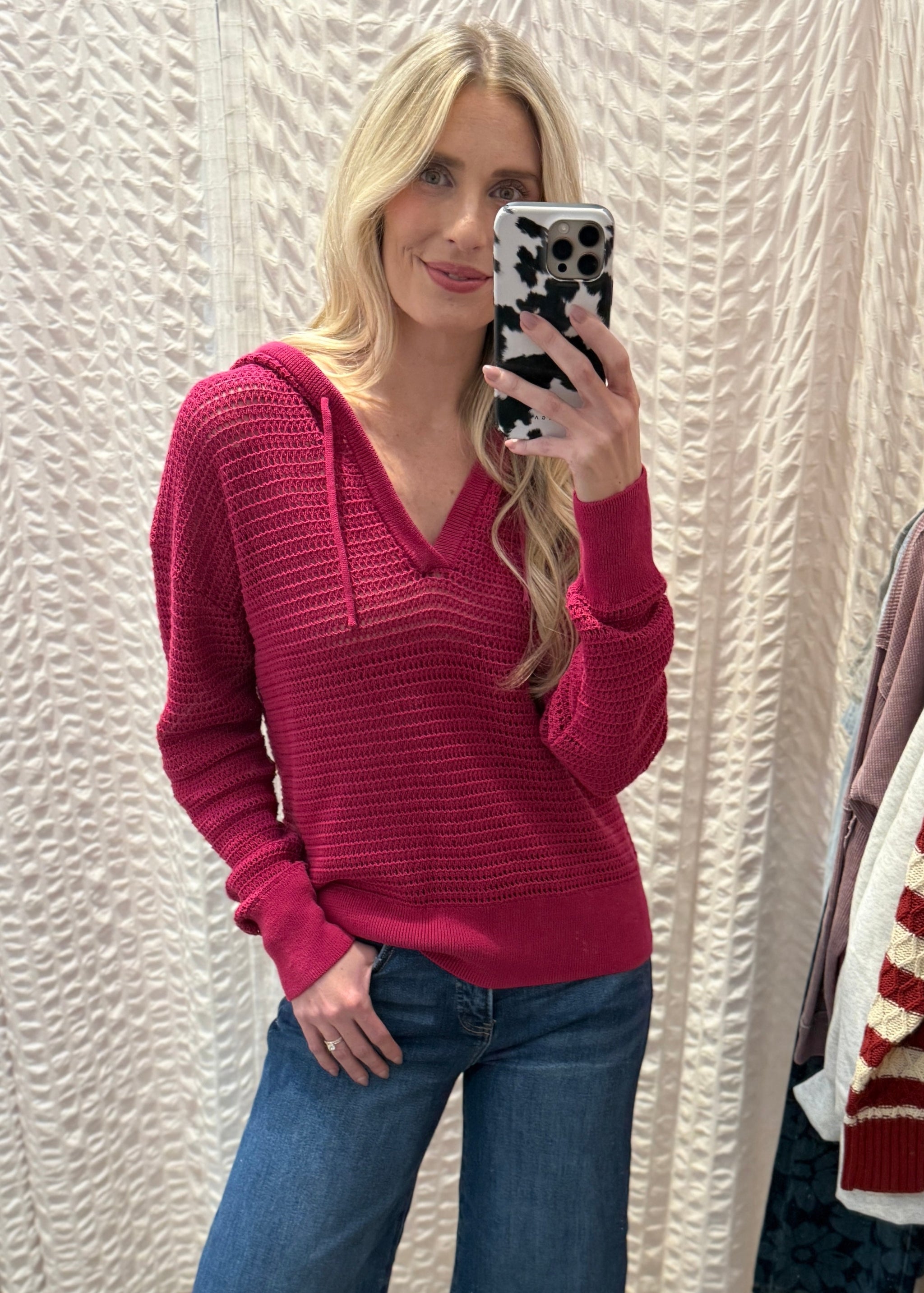 This Crochet hoodie is your go-to lightweight sweater for breezy spring and summer days. Made from a soft cotton-poly blend, this loose-knit pullover offers just...