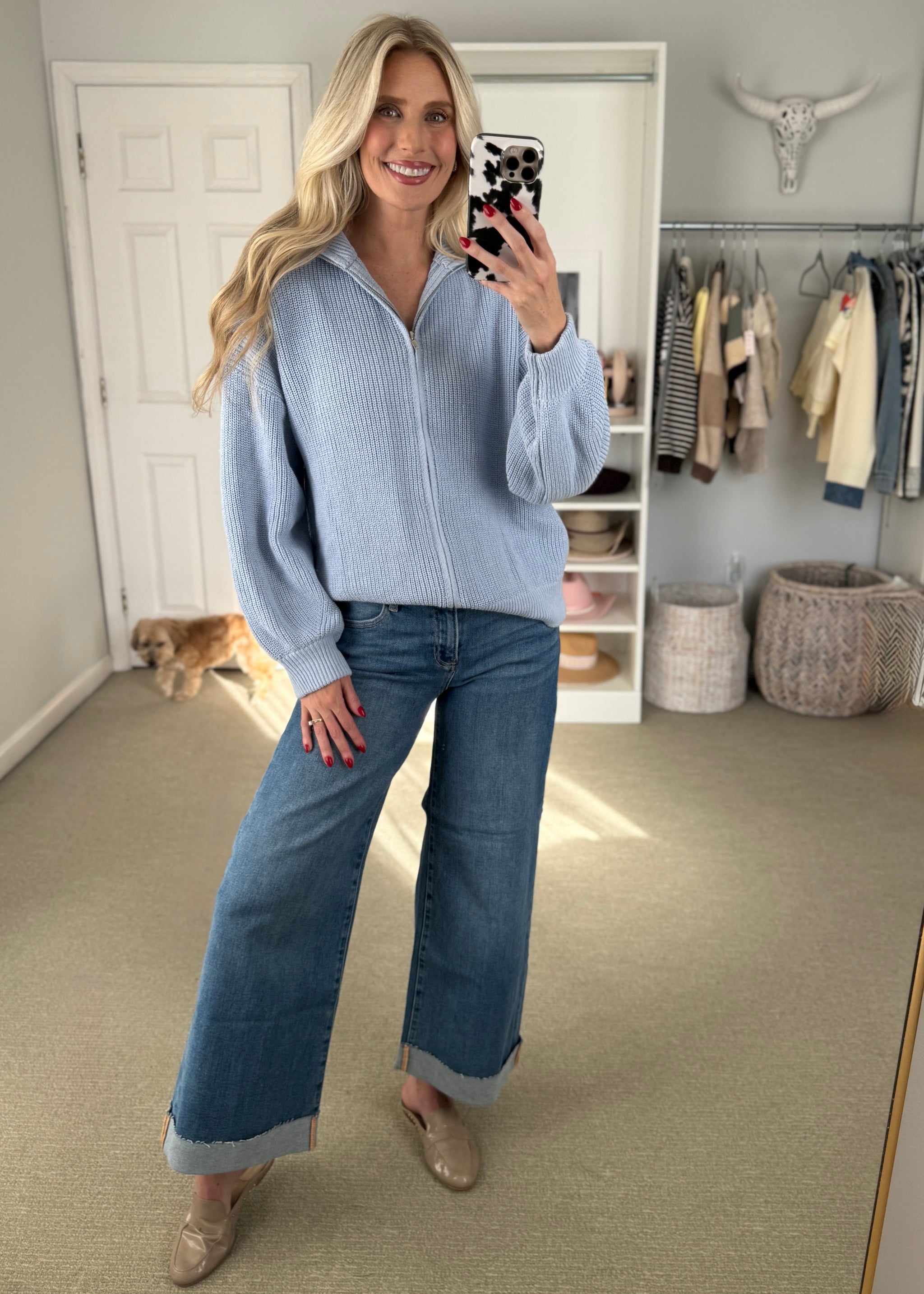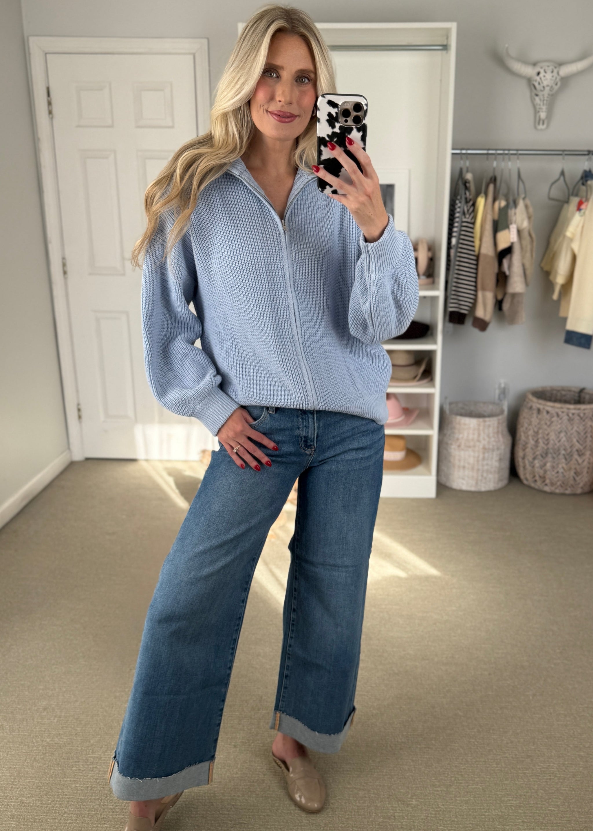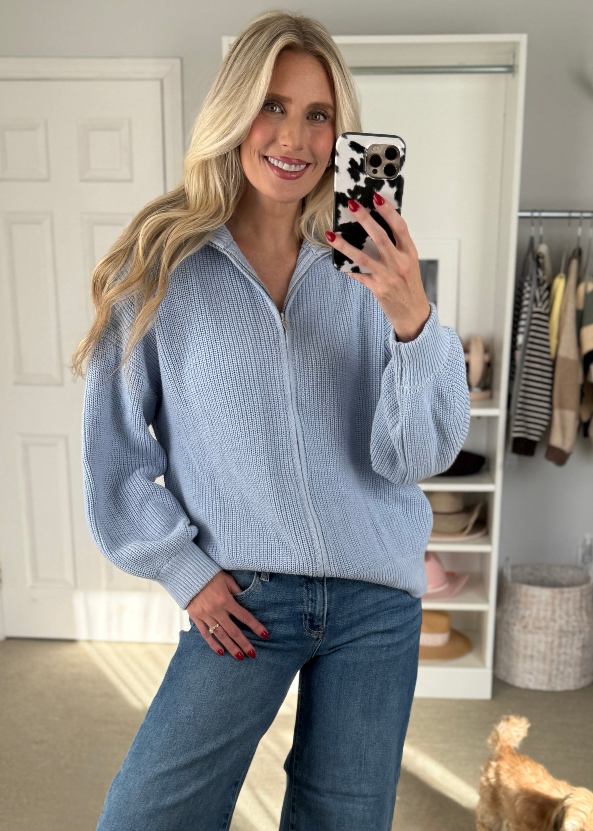 zip front caridgan sweater in oatmeal. Oversized and slouchy fit.