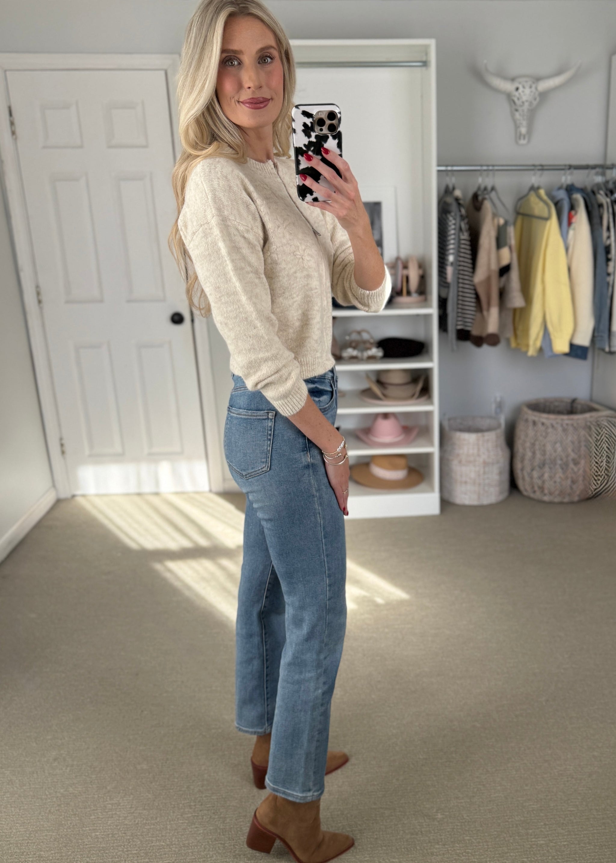 Such a pretty top; perfect for layering or to wear along. Made in a semi sheer lace, creamy ecru is always a go-to! Meant to...
