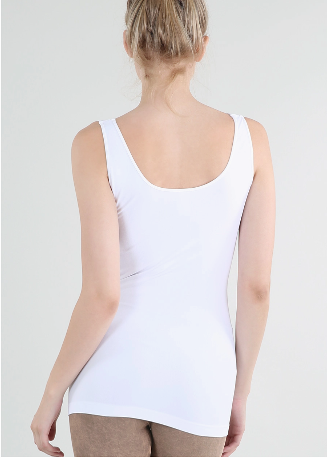 Fitted tank featuring a classic design enhanced with shirred details and a clean square neck. Fitted style, super soft material. Double lined on the top...