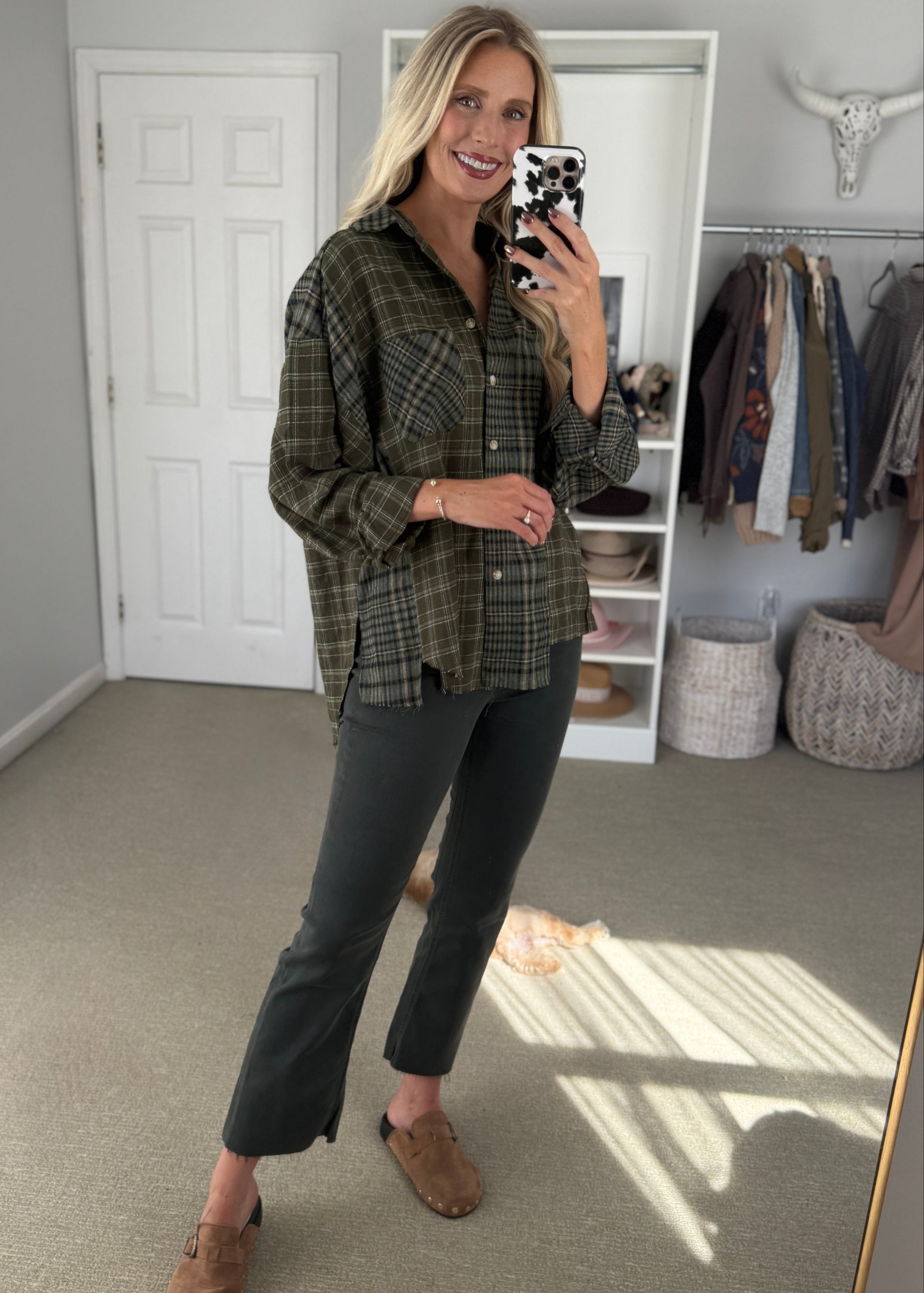 This lightweight flannel is a classic! Featuring a raw hem and one patch pocket, it's oversized and great for layering. 100% cotton; hang to dry...