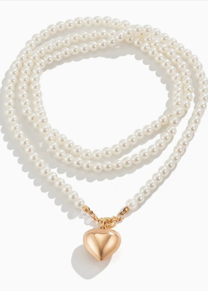 this Multi-Wrap Beaded Necklace is designed to add timeless charm to any look. Featuring faux pearl beads and a bold heart charm, this piece can be wrapped multiple times for a layered effect or worn long. 47" Ext: 3" with a Lobster Claw clasp gold-tone heart. Lead & Nickel Compliant.